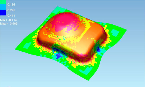 当社では板金部品および樹脂部品の3D金型設計・製作を社内で行っています。CAEシステムを使用したプレス成形シミュレーションや樹脂成形加工シミュレーションにより、初期段階での問題抽出も可能になり、量産性の向上、日程の短縮、費用削減など大きな効果をあげています。